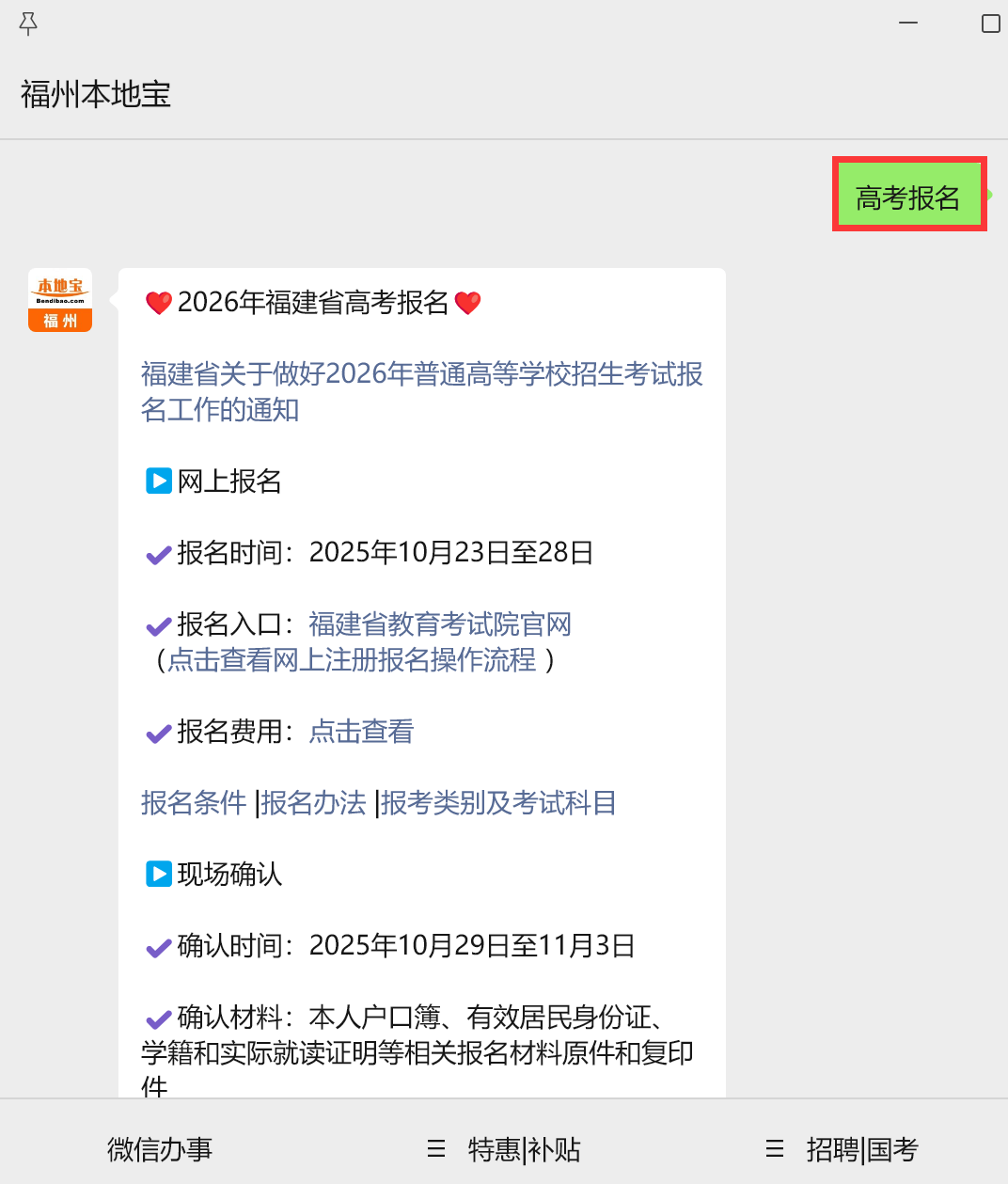 开云在线娱乐【福州当地宝】⭐幼编提示:,2026年福筑高考报名光阴及入口等内正在微信对话框答复【高考报名】也可获取容